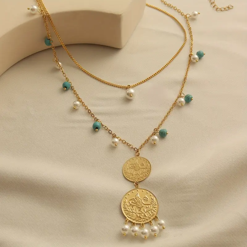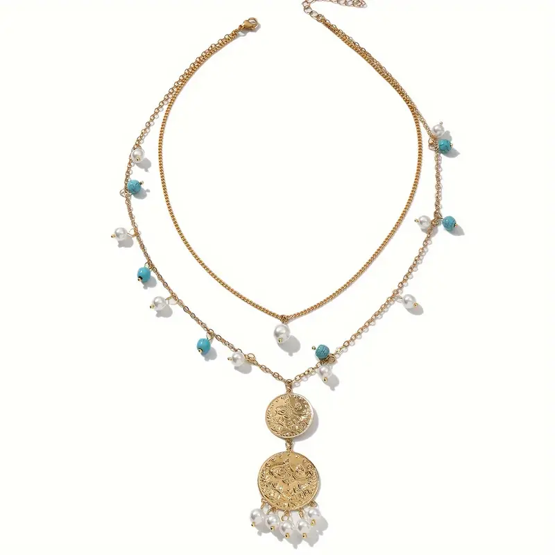 Turquoise and Pearl Tassels, Multi-Layer Fashion Jewelry for Women, Perfect for Daily Wear and Gift Giving