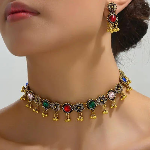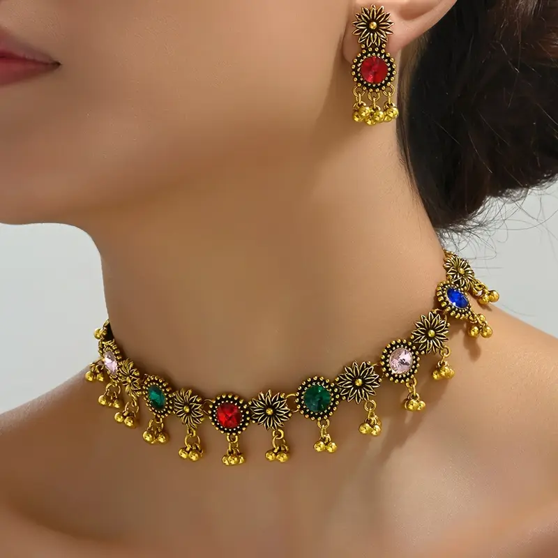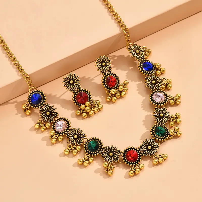 Bollywood Style 1 Pair of Earrings + 1 Necklace Vintage Jewelry Set