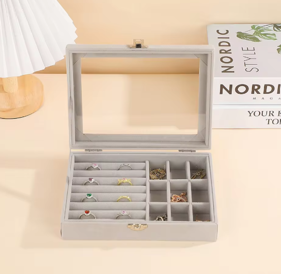 Elegant Velvet Jewelry Organizer - Portable & Dustproof Storage Box for Necklaces, Earrings, Bracelets