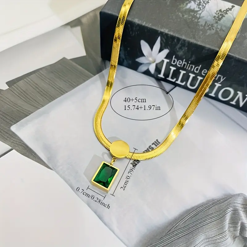 Elegant & Classic Style, Golden Snake Bone Chain with Deep Green Zirconia Pendant Necklace, Earrings, Fashion Delicate Accessory for Daily Wear, Idea Gift, Without Box, Necklace Can Be Purchased Separately