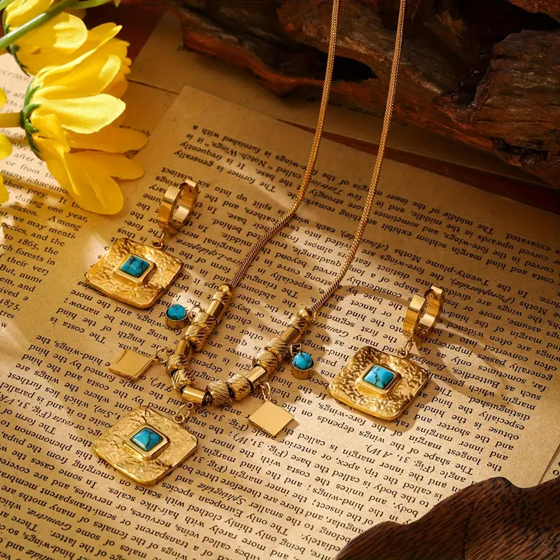 Jewelry Set Made of Stainless-Steel Golden Geometry Design Match Daily Outfits